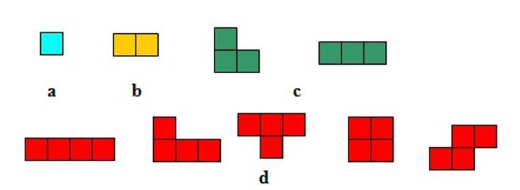 Da bravo matematico, tentò poi di classificarle, cercando di stabilire quante figure diverse fosse possibile costruire con un quadretto, con due, tre, quattro quadretti e così via, stabilendo però una regola precisa: i quadretti che componevano le varie figure dovevano avere almeno un lato in comune e si dovevano considerare equivalenti tutte quelle che potevano essere sovrapposte con un movimento qualsiasi.