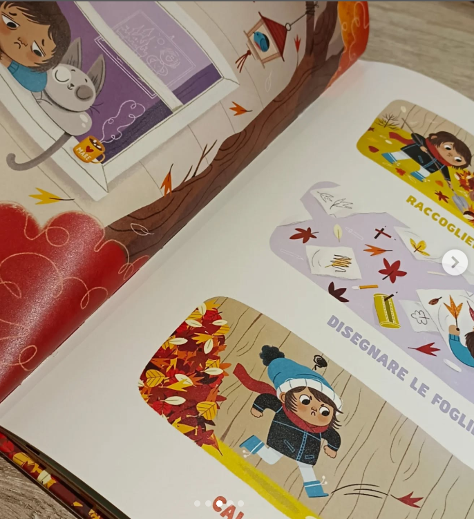 Le illustrazioni sono un vero punto di forza del libro. Ogni pagina è ricca di dettagli che catturano l’essenza dell’autunno, con colori caldi e accoglienti che riflettono perfettamente l’atmosfera della stagione. Le immagini non solo accompagnano il testo, ma lo arricchiscono, offrendo ai lettori una dimensione visiva che amplifica l’esperienza narrativa. I personaggi sono disegnati con espressioni che comunicano chiaramente le loro emozioni, aiutando i bambini a comprendere meglio la storia.