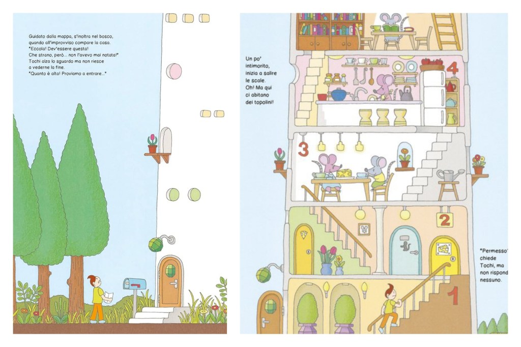 La storia inizia con un bambino di nome Tohru che riceve un misterioso invito a visitare una casa molto speciale: una casa a cento piani. Curioso e avventuroso, Tohru decide di esplorare questa casa straordinaria, scoprendo ad ogni piano una nuova e sorprendente avventura.Il viaggio di Tohru attraverso i 100 piani della casa è un susseguirsi di incontri con personaggi stravaganti e situazioni bizzarre. Ogni piano è un mondo a sé, con un tema e un’atmosfera unici. Dal piano delle mucche volanti al piano delle conchiglie danzanti, l’autore ci porta in un’avventura che stimola la fantasia e la curiosità. Tohru incontra creature meravigliose, risolve enigmi e impara lezioni preziose lungo il percorso.Ogni pagina è ricca di dettagli e colori vivaci che catturano l’attenzione e stimolano la fantasia, un mix di surrealismo e magia, che trasporta i lettori in un mondo onirico e fantastico. La struttura verticale del libro, che si sfoglia dal basso verso l’alto, rende l’esperienza di lettura unica e coinvolgente. Ogni piano è descritto con precisione, e le immagini accompagnano perfettamente il testo, creando un equilibrio armonioso tra parola e immagine.